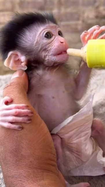 Sometimes Baby Monkey Luci shows a very funny side of her personality—she’s simply too lazy to drink her milk. When it’s time to eat, she doesn’t rush or get excited like usual. Instead, she relaxes completely, as if milk time can wait. Her tiny body sinks into a comfortable position, and her eyes slowly blink, half-closed with sleepiness.