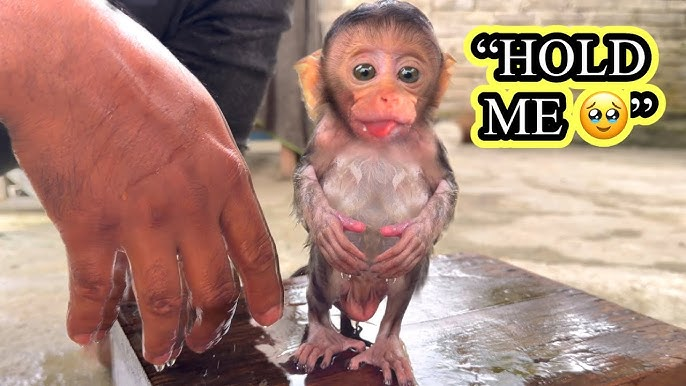 Today was bath time for Baby Monkey Mimi, and she truly surprised me. From the moment I filled the little tub with warm water, Mimi looked a bit nervous, her tiny ears twitching and eyes wide with curiosity. But she didn’t resist too much — just that careful, cautious little look that only a baby monkey can give.