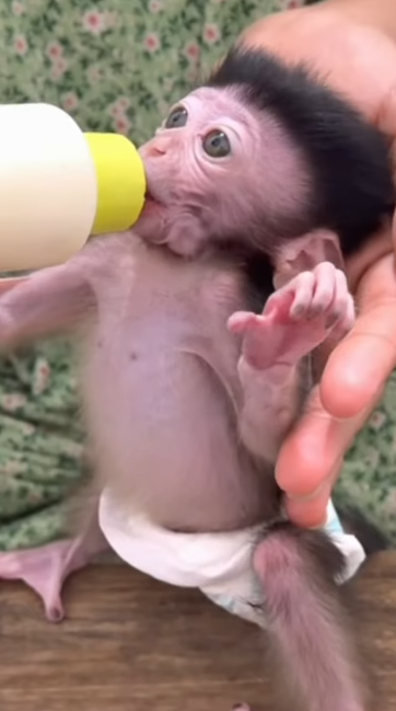 Baby Monkey Luci is growing smarter every single day, and one of the cutest moments is when he asks for milk all by himself. He may be tiny, but his little mind knows exactly what he wants. The moment hunger appears, Luci doesn’t cry loudly or panic. Instead, he looks around carefully, searching for Baby Monkey Cici with those bright, curious eyes.