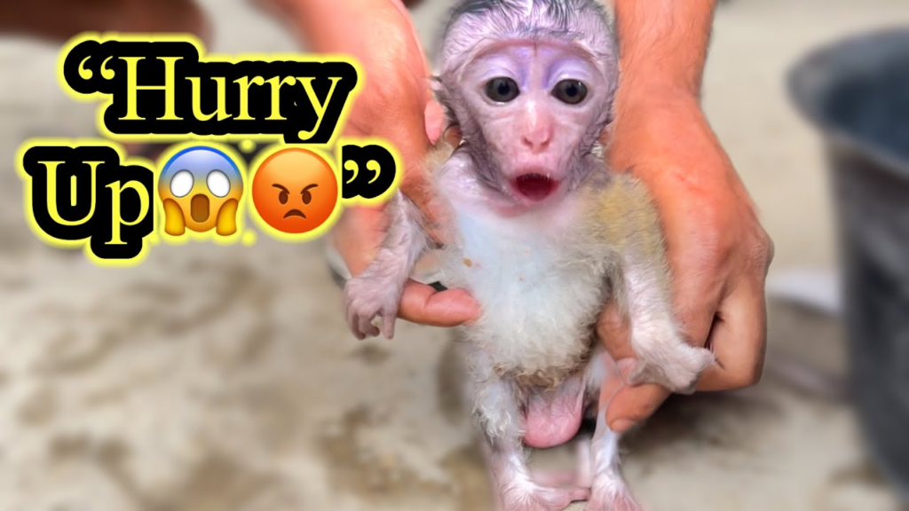 That Grumpy Face… It’s Bath Time 😅🛁 – Baby Monkey Cici