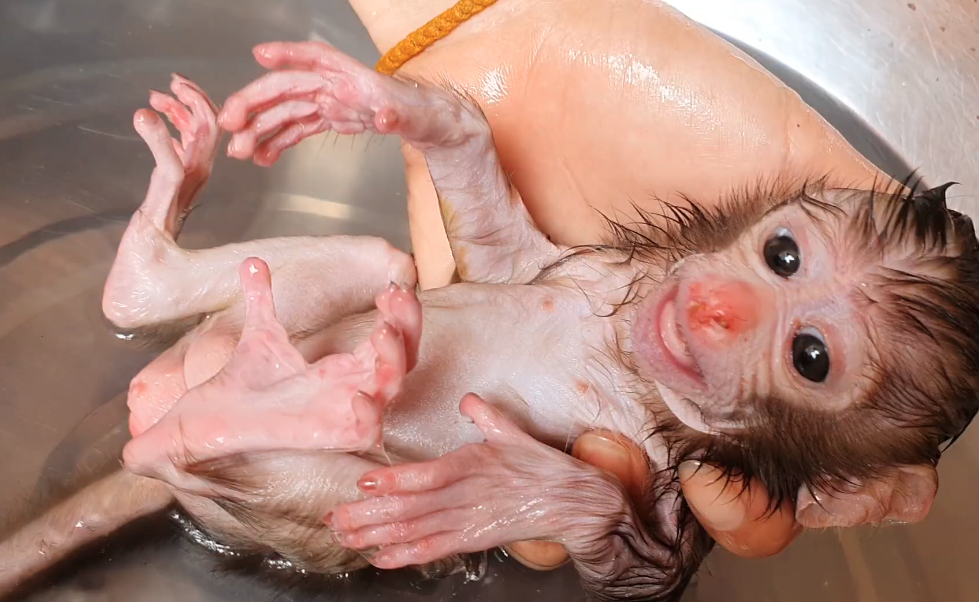 The first day of rescuing baby Rosa was both emotional and unforgettable. This tiny little monkey, fragile and confused, had just been taken out of a dangerous situation and brought into a safe environment for the first time. Everything around her was new—the sounds, the smells, the people—and because of that, Rosa felt scared and unsure. When the time came for her very first bath, her fear showed the most. Even though the bath was gentle and warm, Rosa cried loudly from the moment the water touched her little body.