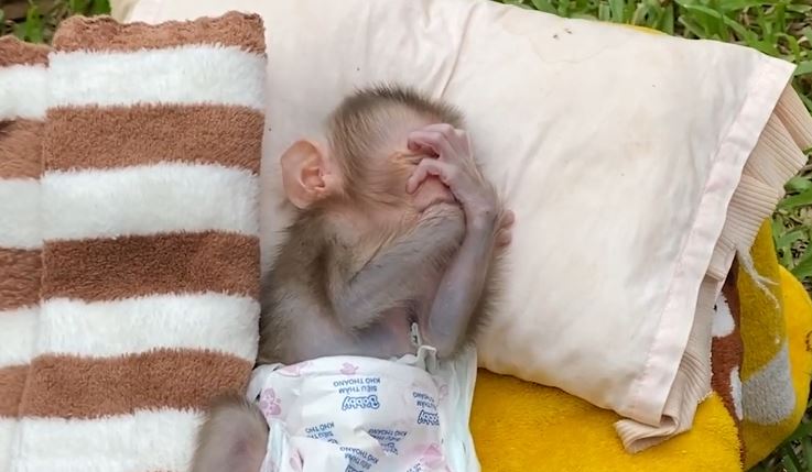 The first time I saw the little puppy monkey, my heart instantly melted with joy and warmth. It was such a peaceful and beautiful moment that I will never forget. The tiny creature was lying quietly, wrapped in a soft blanket, with its eyes gently closed as if it was dreaming sweet dreams. Its small body rose and fell slowly with each breath, making it look even more adorable and calm.