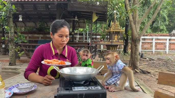 In the quiet early morning, while the sun was just beginning to warm the trees, Mother Monkey moved gently around the small kitchen area, preparing rice for Marry Marrya. The air was calm, filled with soft sounds of nature, and Baby TanTan watched everything with wide, curious eyes. For TanTan, this moment was not just about foodโit was about love, care, and the comforting routine shared with Mother.