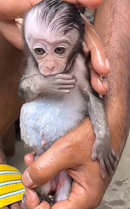 The moment bath time is mentioned, Baby Monkey Mimi transforms into something extraordinary—the Wriggle Monster. What was once a calm little baby suddenly becomes a bundle of nonstop movement, clearly determined to avoid water at all costs. Her body twists, her legs kick, and her tiny arms push away with surprising strength. This is not just resistance; it’s an epic struggle that turns bath time into a full adventure.