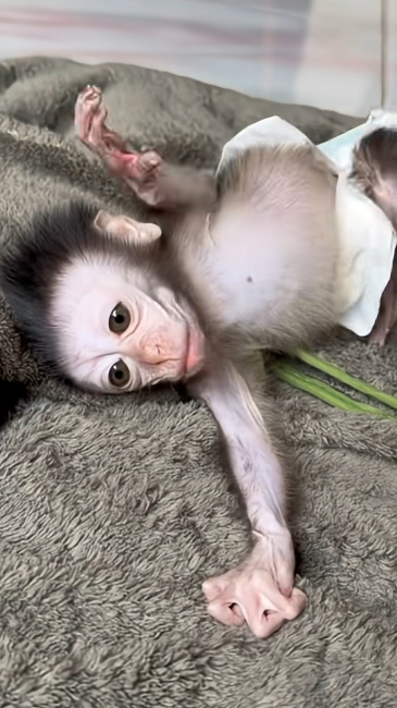 Sometimes, Luci’s eyes would close for a brief moment, only to open again and glance at her surroundings. Every little movement was slow and deliberate — stretching her tiny arms, turning her head slightly, and letting her tail flick lazily. It was the perfect picture of baby monkey serenity.