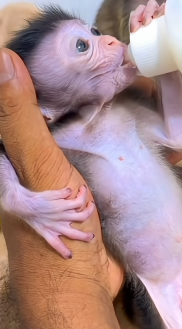 There are few things as heart-melting as watching a newborn baby monkey drink milk for the very first time—and today, this little one made it absolutely unforgettable. From the moment I brought the bottle close, his tiny hands reached out instinctively, holding on with surprising strength for such a little body. His eyes were wide with curiosity and trust, completely focused on the milk that promised warmth and comfort. 🥺🍼🐒