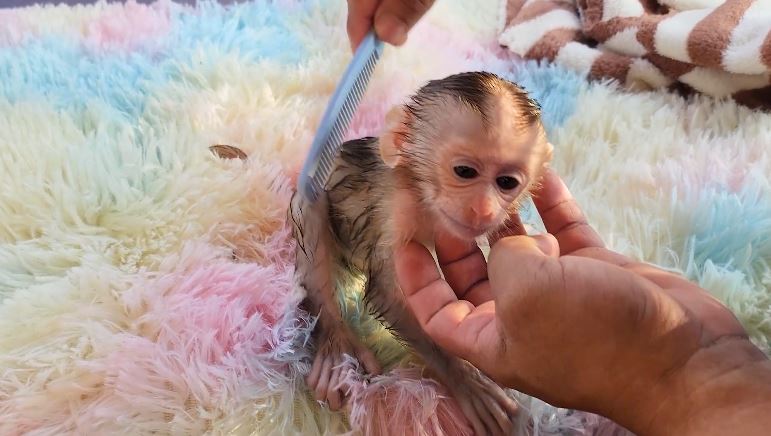 After the hair is nicely combed, the little monkey looks fresh, clean, and absolutely adorable. With a happy face and bright eyes, the baby feels ready to rest or play again. Sometimes, the monkey cuddles close to Mum, enjoying the comfort after the bath routine. It’s not just about cleaning—it’s about love, care, and connection.