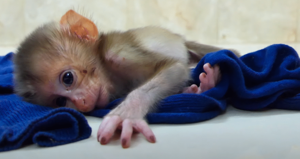It was an emotional and unforgettable moment — the very first bath for the newborn baby monkey named Dody. Just a few days old, Dody still felt fragile and unsure of the new world around him. As soon as the warm water touched his little body, he cried very loud, expressing both surprise and a little fear. The sound was heart-touching, like a tiny baby asking for comfort and protection.
