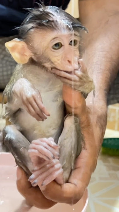 Baby Mimi’s bath after playtime is a beautiful routine that shows how care and love turn energy into peace. Watching her transition from playful chaos to quiet comfort is truly charming and heartwarming. 🐒🛁💛