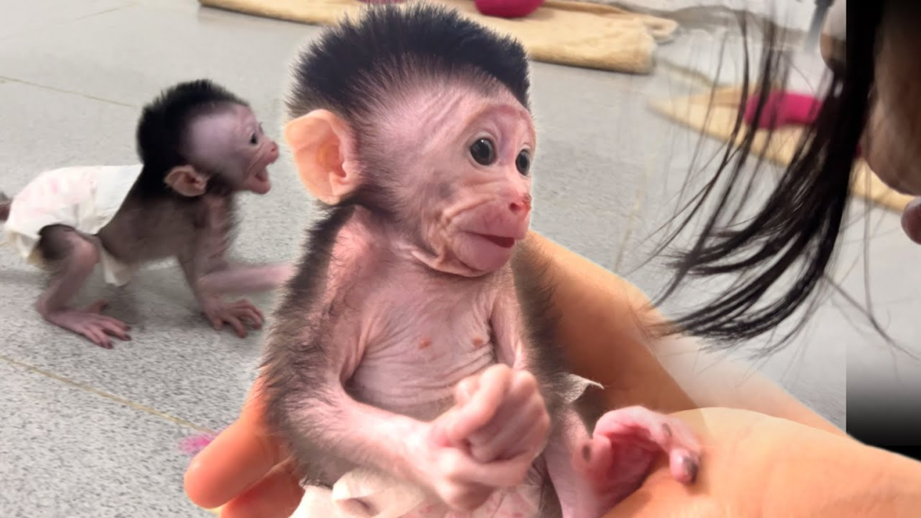 I tried to distract her with a toy, soft words, and gentle pats, but the bright color had captured her full attention. She squeaked again, small voice high-pitched, almost like a question: βIs this going to jump at me?β Every step she took was cautious, deliberate, and slightly exaggerated β a little performance of baby monkey fear.