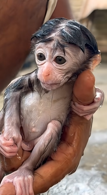 What amazed everyone most was how Luci followed every movement. When the water cup lifted, her eyes followed it. When the water flowed, she watched calmly. She even lifted her chin slightly, as if helping with the bath. Such smart behavior from such a young baby monkey made everyone smile with pride. 🛁💛