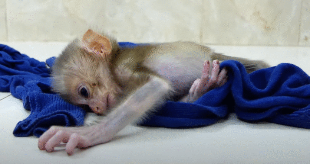 The first bath is always a special moment, especially for a tiny newborn baby monkey who has just arrived in a new home. Today, this fragile little baby experienced its very first bath — a soft, gentle one lovingly given by its new human mom. At first, the baby monkey cried very loudly, its tiny voice full of fear and confusion. The water felt strange, and everything was new. It didn’t understand what was happening, and its little heart beat fast from the unfamiliar touch.